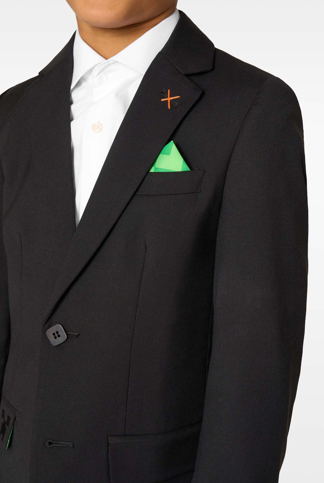 Classic tailoring meets blocky flair. This officially licensed Minecraft™ blazer is made for kids who like to keep things sleek on the outside and creative underneath. The iconic green blocky style in the lining is a subtle nod to the Overworld – and a great addition to your inventory!