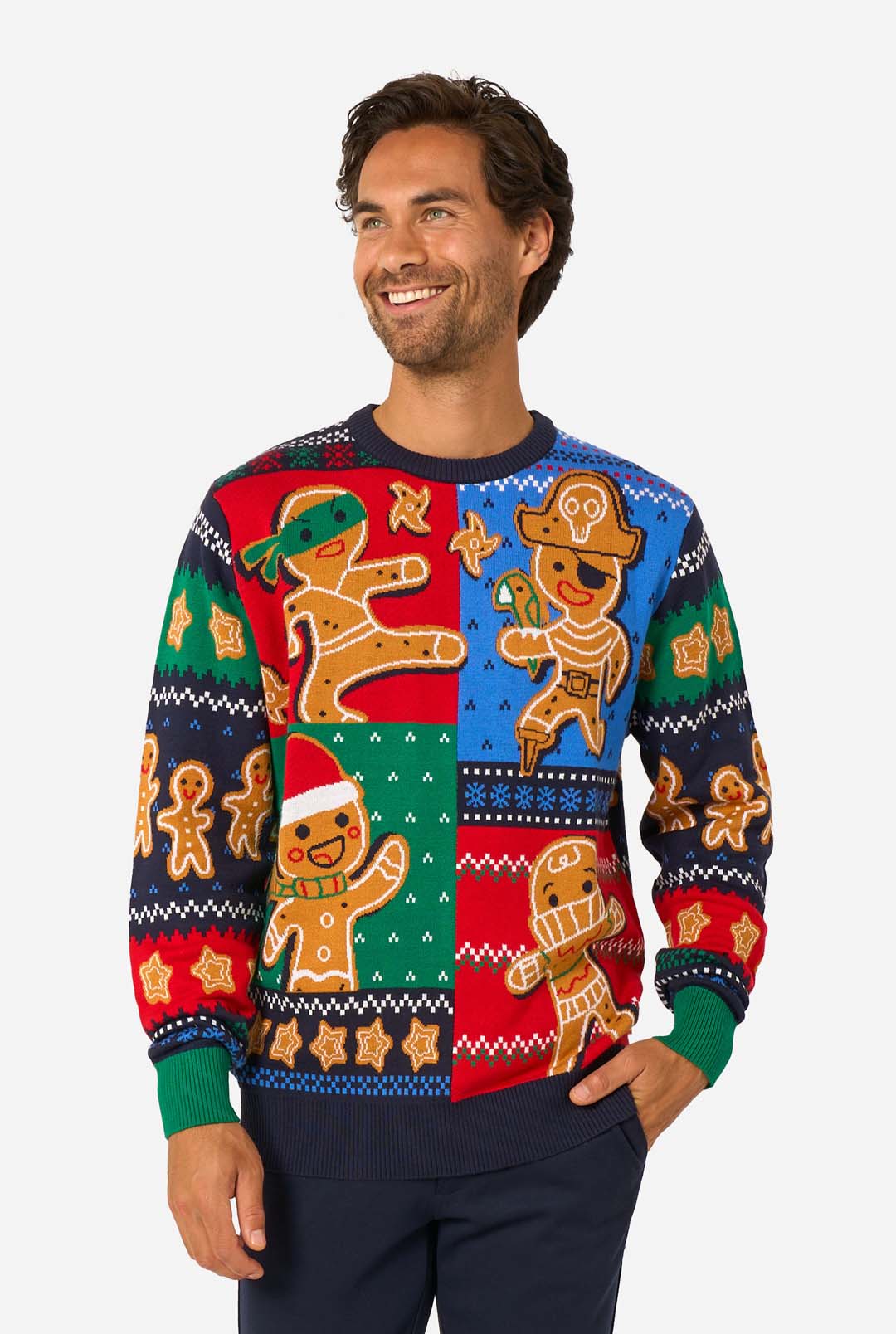 Gingerbread men are unmistakably Yuletide themed and this Knitted Sweater is the perfect recipe for looking like a Christmas snack. The Gingerbread Christmas Sweater is the tastiest way to sweeten up your festive wardrobe. Knitted Christmas sweater.